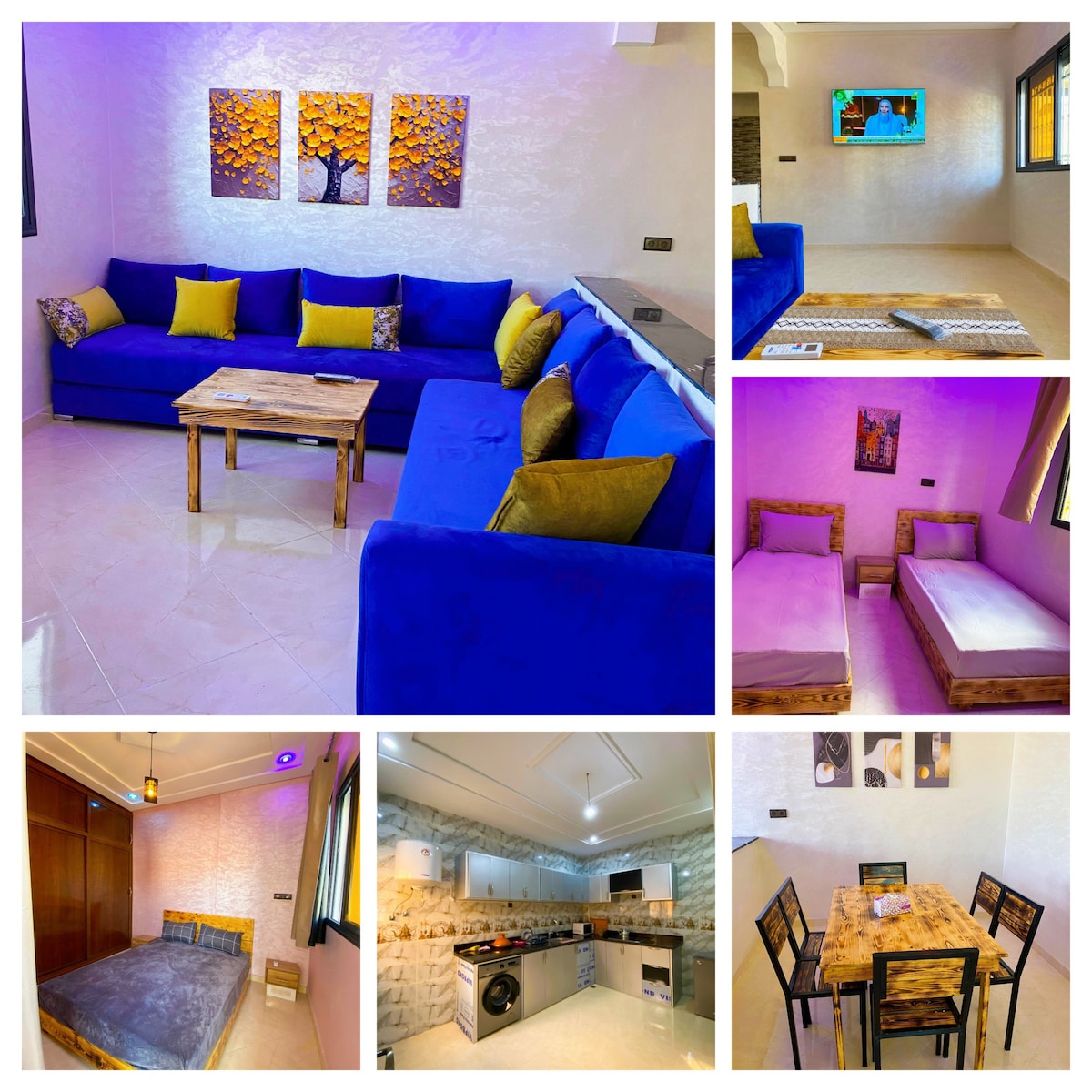 Cet hébergement élégant est parfait pour les groupes, familles et amis Venez profiter de ce logement entier dans un paisible nouveau quartier 2 chambres 2 salons 2 salles de bain Cuisine 1 terrasse 1 solarium WiFi illimité Parking gratuit Logement sécurisé Pas de voisins dans l'immeuble ... On vous accueille à la marocaine et on est à disposition, discutons 👍🏼
