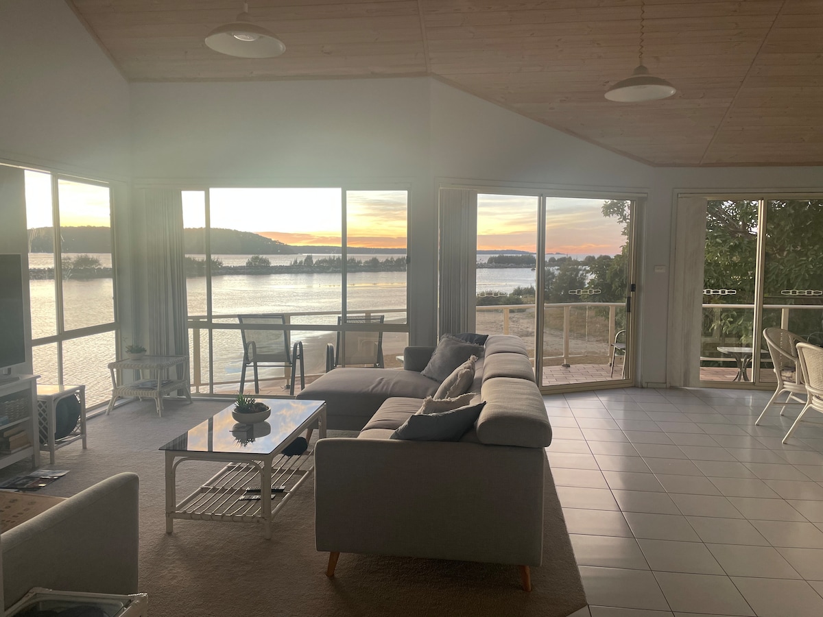 Spacious Waterfront Home in popular Mossy Point featuring expansive views of the Tomaga River! Disabled Friendly, Pet Friendly (on application) & free WIFI. Open Plan Living/Dining Area, Large Entertaining Deck, Spacious Master Suite, Large Lawn Area for Kids to Play. Plenty of room for 2 Families or Bring the In-Laws! Welcome Starter Supplies provided of Tea, Coffee, Milk etc. All Linen provided for $80 fee. Quiet Residential Area, only metres from the boat ramp makes for the Perfect Getaway!