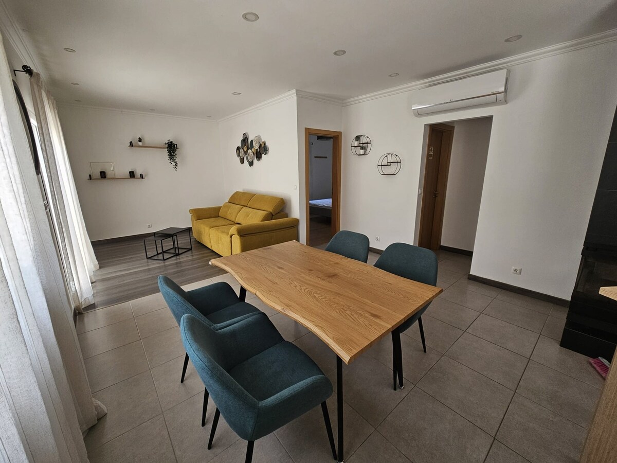 Casa situada en el centro de Charneca de Caparica, a 5/10 minutos (en coche) de las playas y a 15/20 minutos (en coche) de la gran ciudad de Lisboa. Apartamento independiente en una casa familiar, totalmente equipado, que consta de: - Salón con sofá cama doble -Quarto com 2 camas individuales con terraza de acceso. - Cocina con balcón. - Baño. - Balcón con barbacoa eléctrica - Terraza/salón para relajarse, comer y tomar el sol. - Estacionamiento privado dentro de la propiedad.