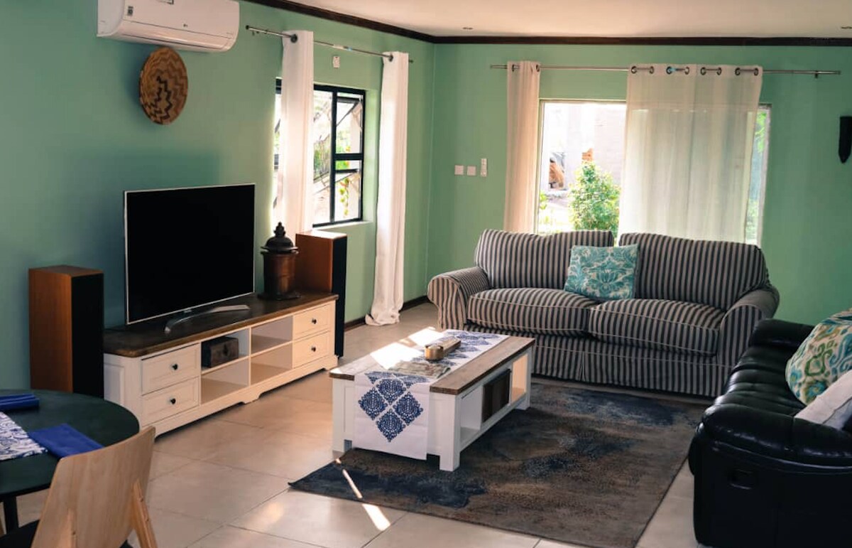 Casa de huéspedes Beulah Court Vineyard... Es una casa de una sola planta con seis dormitorios, todas en suite, bed and breakfast. Es un lugar espectacular para hospedarte. Jardines bien mantenidos con césped. Los huéspedes pueden relajarse y disfrutar en nuestros hermosos jardines. Bastante lugar Nuestras habitaciones son espaciosas y cómodas. Todas las habitaciones tienen TV y wifi. Somos accesibles en transporte público desde Kasane y Kazungula o Francistown. Tomamos recogidas en el Aeropuerto Kasane Livingstone y del Aeropuerto Vfalls.