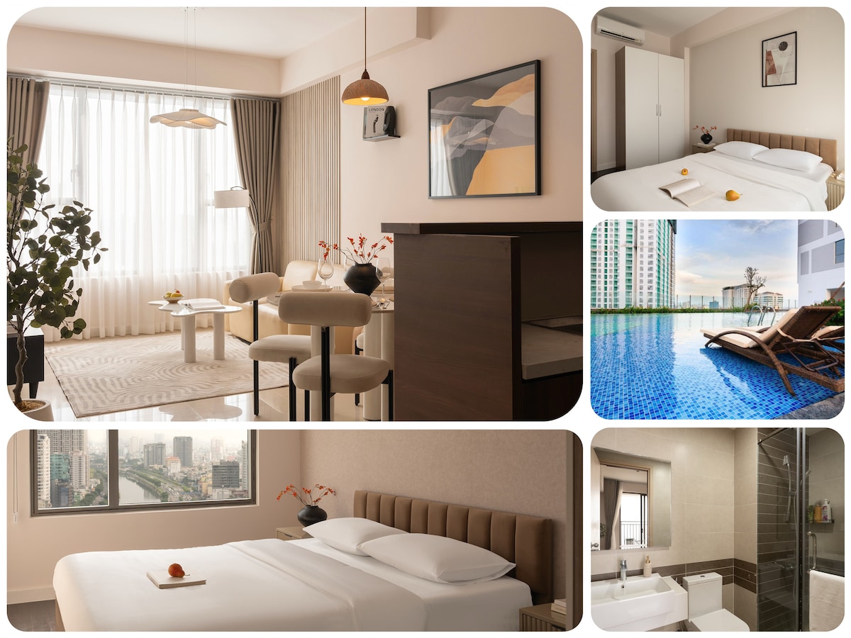 Casa en Rivergate Residence, donde la vista a la ciudad es simplemente mágica. Espacio de trabajo★ ideal ★ Hermoso estudio fresco a 5 minutos a pie del mercado Ben Thanh, la calle Bui Vien y otras atracciones Instalaciones ★ completas en la habitación, como lavadora, utensilios de cocina... Tiendas de★ conveniencia 24/7 y cafetería en el edificio ★Excelente ubicación con vistas al río y a la ciudad ⭐️Un restaurante increíble junto a la puerta principal ⭐️Piscina accesible de 10:00 a. m. a 4:00 p. m. de martes a domingo