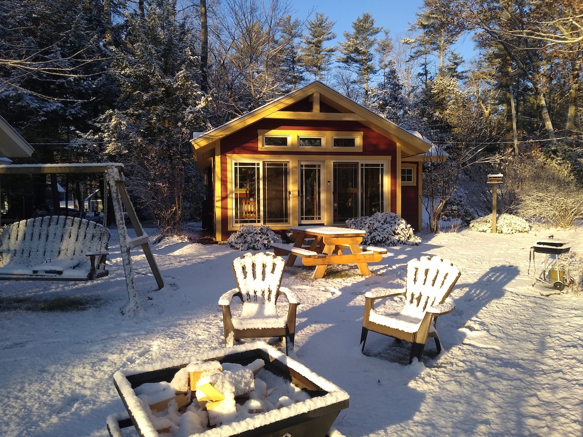 A 15 minutos de Pats Peak. ¡Adorables y diminutas ciudades de Nueva Inglaterra! Pequeños restaurantes familiares a 10 minutos. La pared de ventanas te animará a relajarte o jugar en el lago congelado y hacer s'mores en el fogón (se proporcionan mantas de lana). Acogedora sala de estar equipada con juegos de mesa, TV inteligente y DVD. Wifi, cocina completa y baño completo. Experiencia mejorada como sábanas de lino, manual de casa eco, cafetera espresso y fundas de almohada de satén. Máximo 3 personas, sin niños, no fumadores.