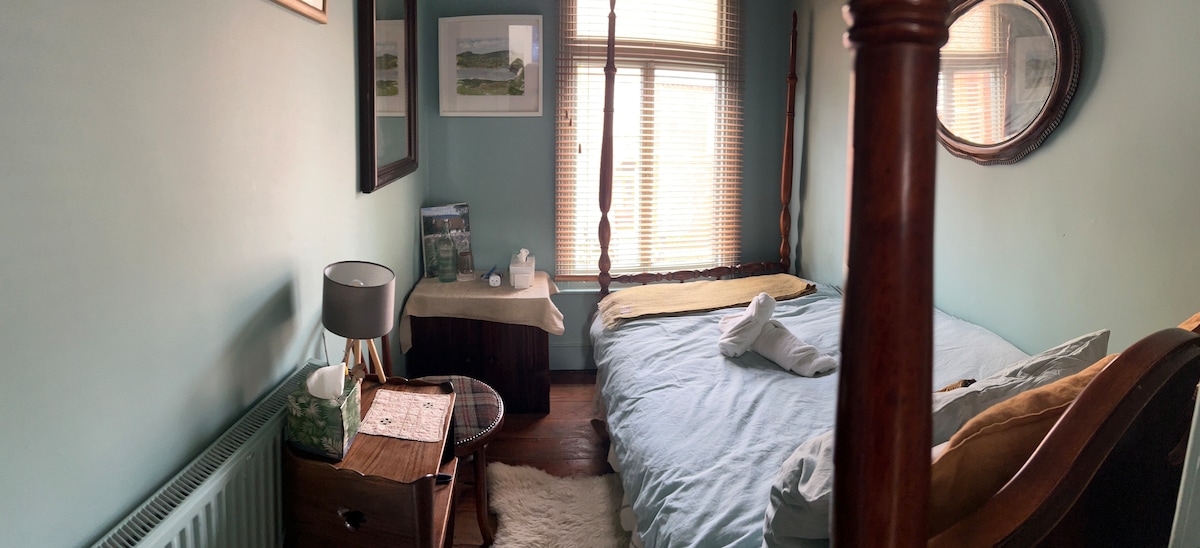 Te damos la bienvenida a nuestra casa eduardiana de 1904. Esta habitación es la habitación Mary Cashion. Mary era modista y vivió aquí en 1904. Se encontraron sus manikins y la pizarra de buisness en esta habitación ¡Tenemos estos en exhibición y llamamos esta habitación en honor a nuestro antiguo residente ! Te damos la bienvenida y esperamos que lo disfrutes Desayuno 22 € por persona Jacuzzi 26 € por persona con una copa de vino o cerveza procecco . . taxis Salida después de la hora establecida 30 € Check-in anticipado a 30 € ESTACIONAMIENTO : Estacionamiento de pago en la calle Aplicación Payzone