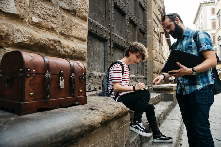Zapatos cómodos y una pequeña linterna (la del teléfono es suficiente) para las búsquedas nocturnas. ¡También usa un paraguas o k-way en caso de lluvia!, La mascarilla se recomienda para garantizar la seguridad de todos los participantes. Sin embargo, las distancias de seguridad entre diferentes grupos siempre estarán garantizadas., Todo el material que proporcioné durante la actividad (bolígrafos, etiquetas) está desinfectado