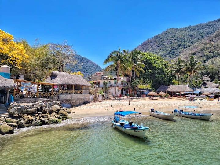 Doy clases de yoga en Puerto Vallarta desde 2013 y voy a Quimixto siempre que puedo. Es mi lugar favorito de la bahía de Banderas para pasar los días libres. Aunque no es ningún secreto, es un lugar poco frecuentado. ¡Ven a pasar un día conmigo!