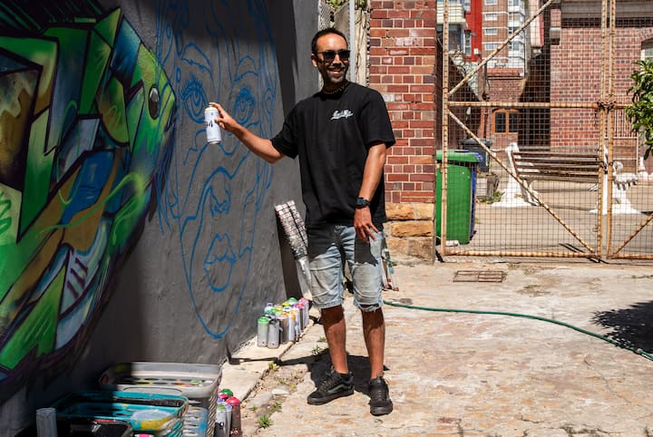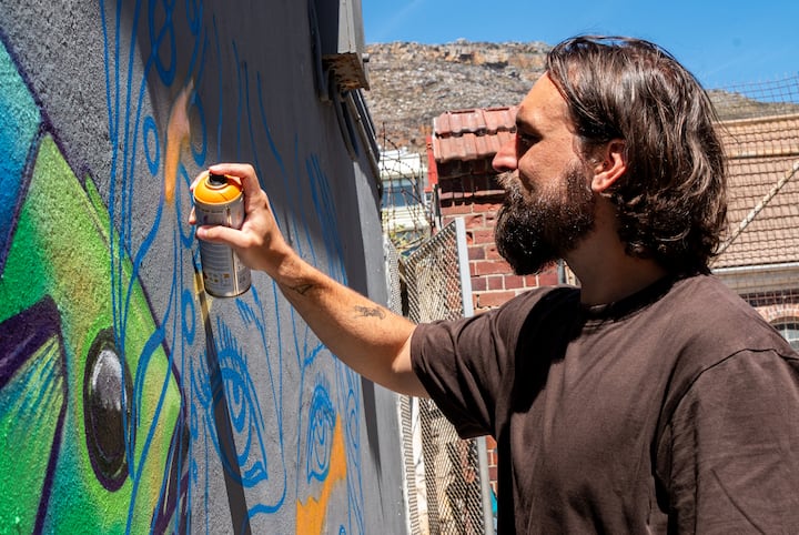 Si tienes la oportunidad de pasar el tiempo con Serge, hazlo. Pasé una tarde increíble rociando una pared en una ubicación encantadora en Muizenberg. La sesión estuvo perfectamente preparada, los materiales de la mejor calidad y Serge es fantástico para explicar cómo manejar una lata en aerosol correctamente.