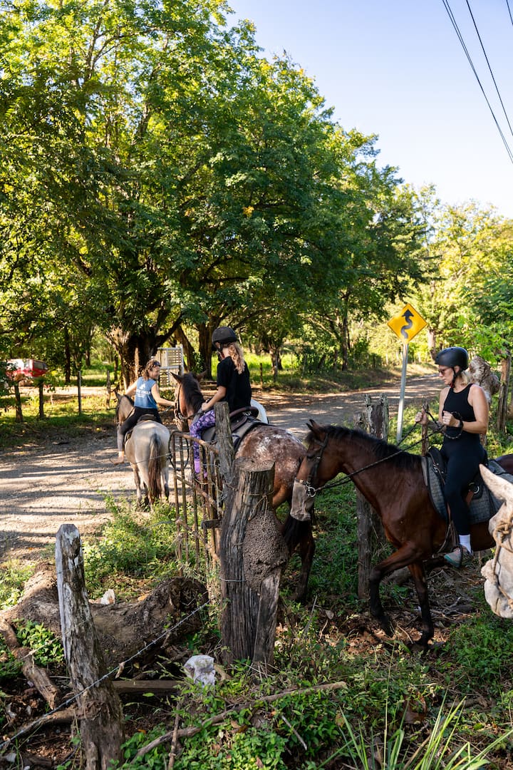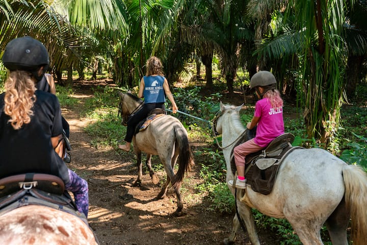 Hoy disfrutamos mucho del recorrido por la selva. Nuestro guía, Horhe, fue muy amable y conocedor de la zona, ya que creció aquí. Describió los árboles de guanacaste y muchas otras especies de árboles, nos mostró muchas aves, monos aulladores, garzas azules y blancas, pequeñas ranas bebé, renacuajos, mariposas, hormigas e incluso nos sirvió piña fresca cuando nos sentamos a descansar. ¡Gracias ! 😎