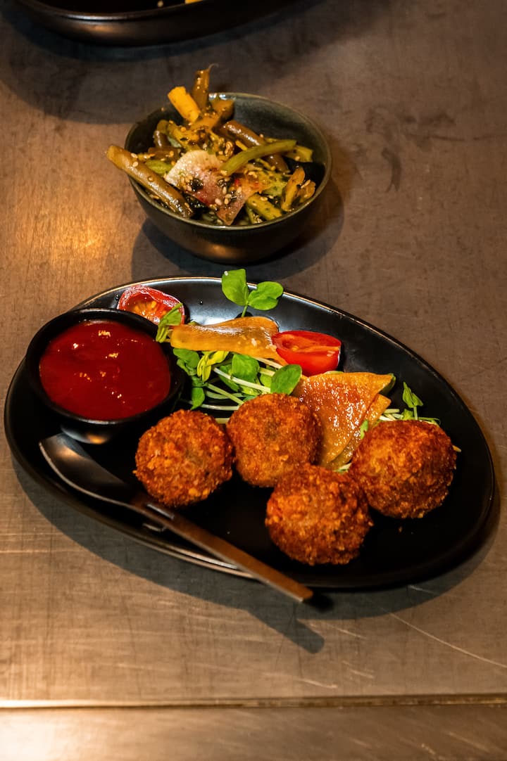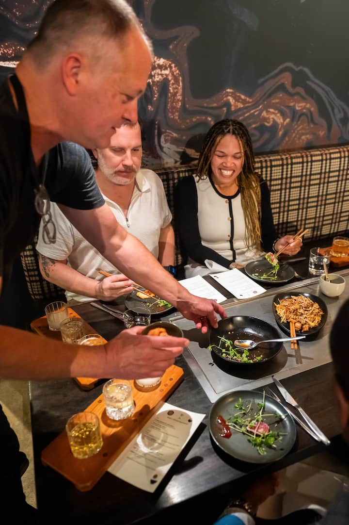 Prueba el okonomiyaki, el plato casero más popular de Osaka, que rara vez se encuentra fuera de Japón. Disfruta de un menú selecto de platos y maridajes de autor de Gaijin, guiado por su célebre equipo culinario.
