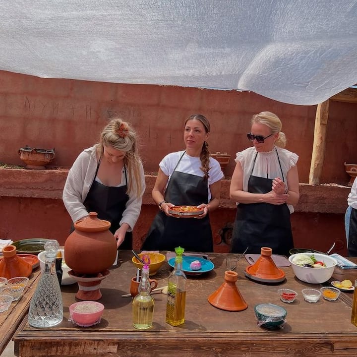 Únete a nuestra familia de Marrakech en nuestro riad para cocinar platos marroquíes tradicionales. Aprende recetas familiares, usa ingredientes frescos, comparte té, historias y disfruta de la comida juntos.