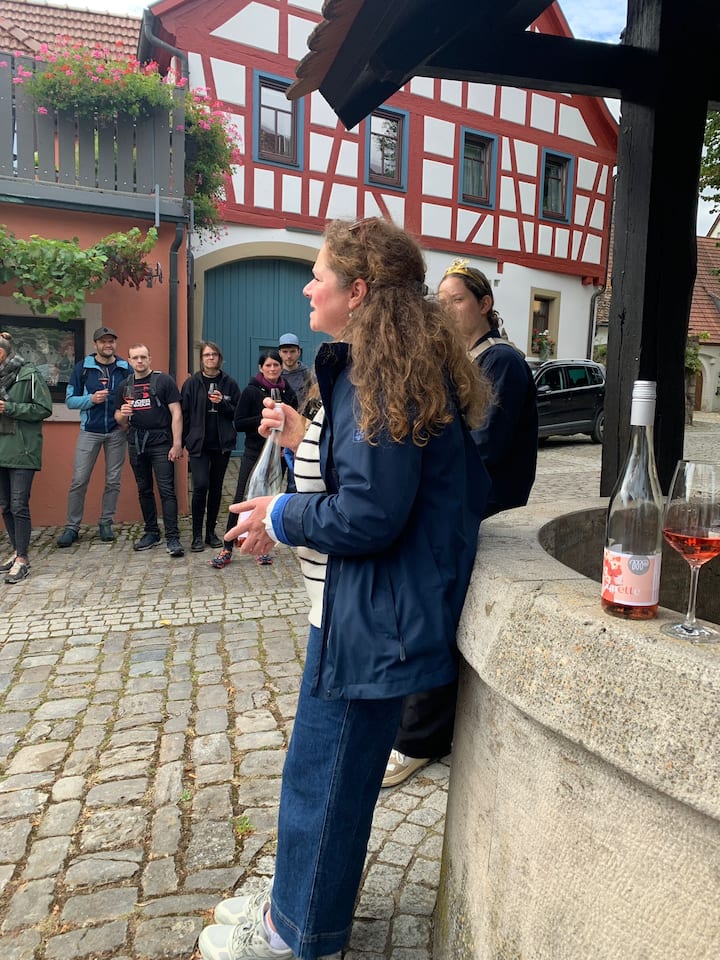 Descubre el pueblo vinícola medieval con una experta en vinos local: callejuelas históricas, viñedos de ensueño y vinos de Franconia seleccionados: auténtico, personal y agradable.