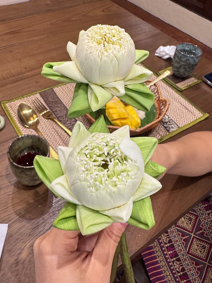 Revisé todo y esta fue la clase más barata que pude encontrar que también proporcionó los platos que quería hacer. Sin lugar a dudas una de las mejores cosas que he hecho mientras viajaba. Una clase dinámica con deliciosos platos tradicionales. También me encantó el loto plegable al final. Escriben tu nombre en tailandés al final para tu certificado. Se lo recomendaría a cualquier persona que aún no haya hecho una clase de cocina tailandesa