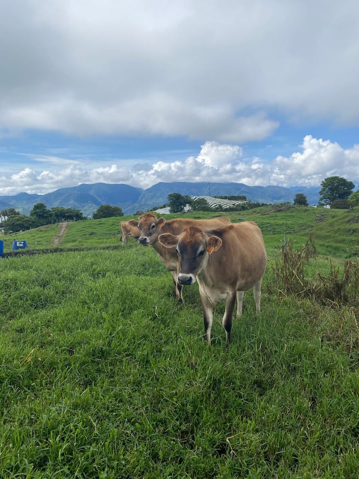 Haremos un tour guiado en la finca, compartiremos con las vaquitas y finalizamos con un taller de queso fresco, que te puedes llevar a tu casa. Degustaremos tortillas de queso y una tabla de queso.