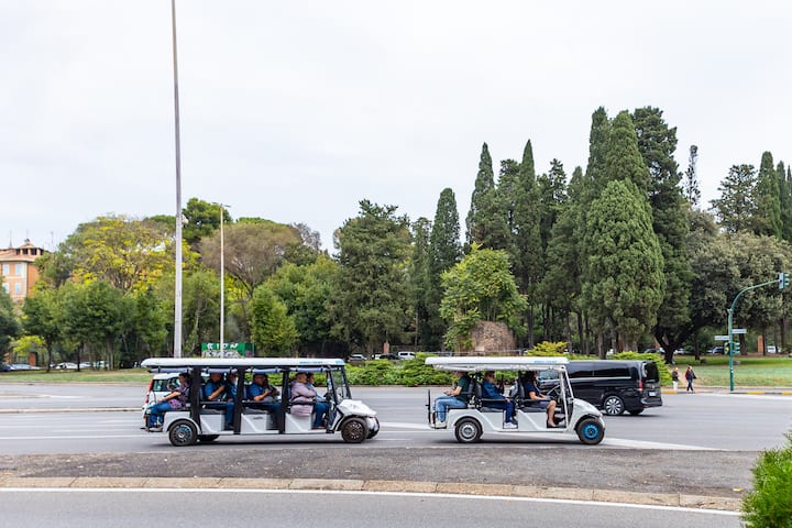 Olvídate de la fatiga de caminar todo el día y súbete a un carrito de golf para disfrutar de un emocionante paseo por Roma. Recorre la ciudad cómodamente, contempla las principales atracciones y visita las catacumbas de Roma.
