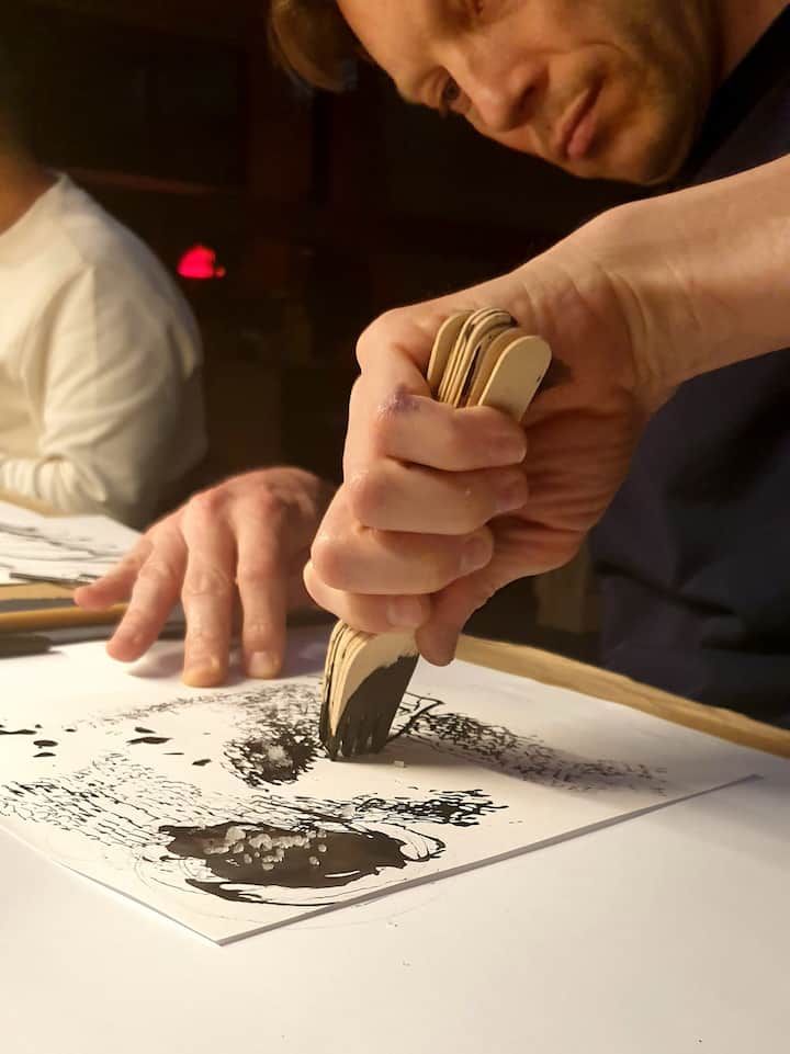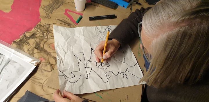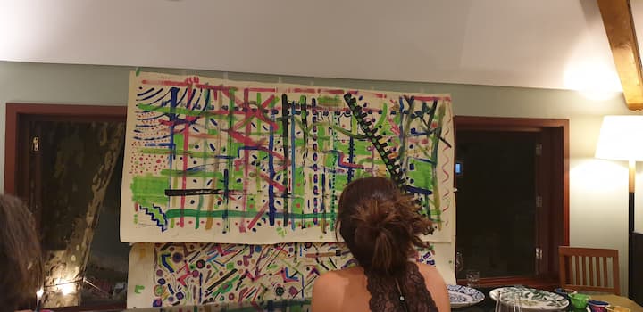 Un encuentro de arte vivo: dibujamos, pintamos, nos movemos y creamos. Aquí, cada gesto es expresión, cada rasgo es descubrimiento, y todo es una invitación a la libertad, al compartir y a la creación libre, sin juzgar.