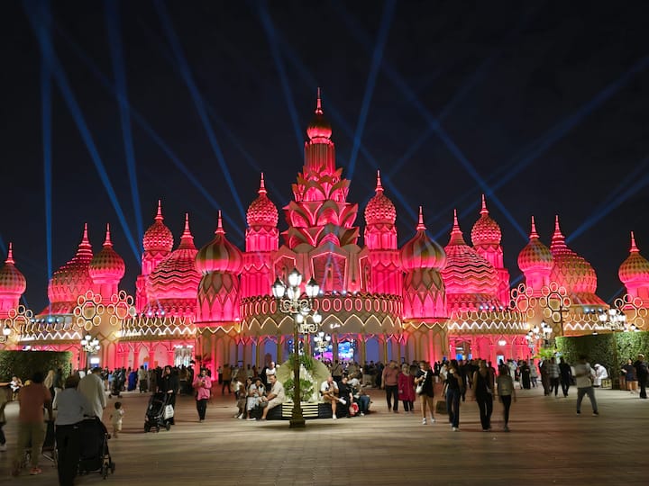 Explora la Aldea Global de Dubái. Descubre pabellones de 90 países, compra productos únicos, disfruta de espectáculos callejeros, prueba gastronomía internacional y vive los colores, la cultura y el encanto de este mercado.