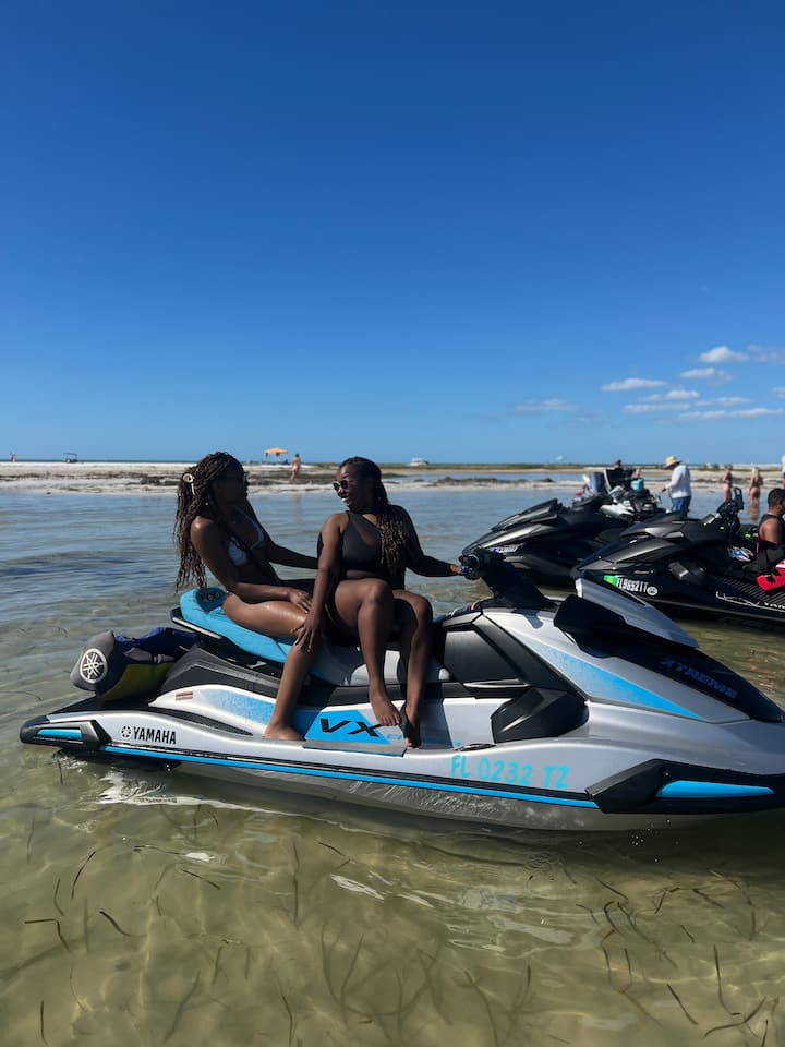 Monta en los nuevos Yamaha WaveRunners en un tour guiado en moto acuática a Egmont Key. Explora aguas cristalinas, vida silvestre, playas escondidas y vistas increíbles con un guía profesional incluido sin costo adicional. Pasajero gratis