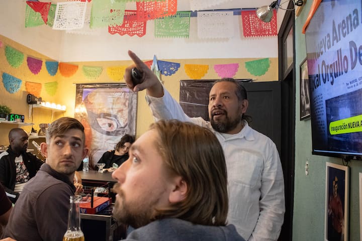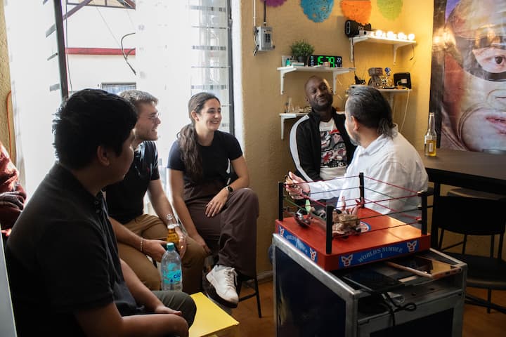 La experiencia con Mario y Carlos fue fantástica. Son coanfitriones con Jorge (mi tocayo). Todo comenzó en su taller donde explicaron qué esperar de la lucha libre, tanto en términos de la cantidad de partidos como de los luchadores esa noche. Aprendimos las reglas y los cantos, y fue emocionante gritar junto con los aficionados. Nuestro viaje a la arena fue muy fácil. El espectáculo en sí vale la pena, pero sería difícil de entender sin una explicación previa. Es una de las mejores cosas que hacer en la Ciudad de México, y por último, el precio nos intrigó, ¡pero valió la pena cada centavo! 11/10