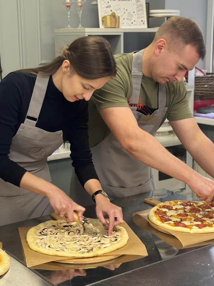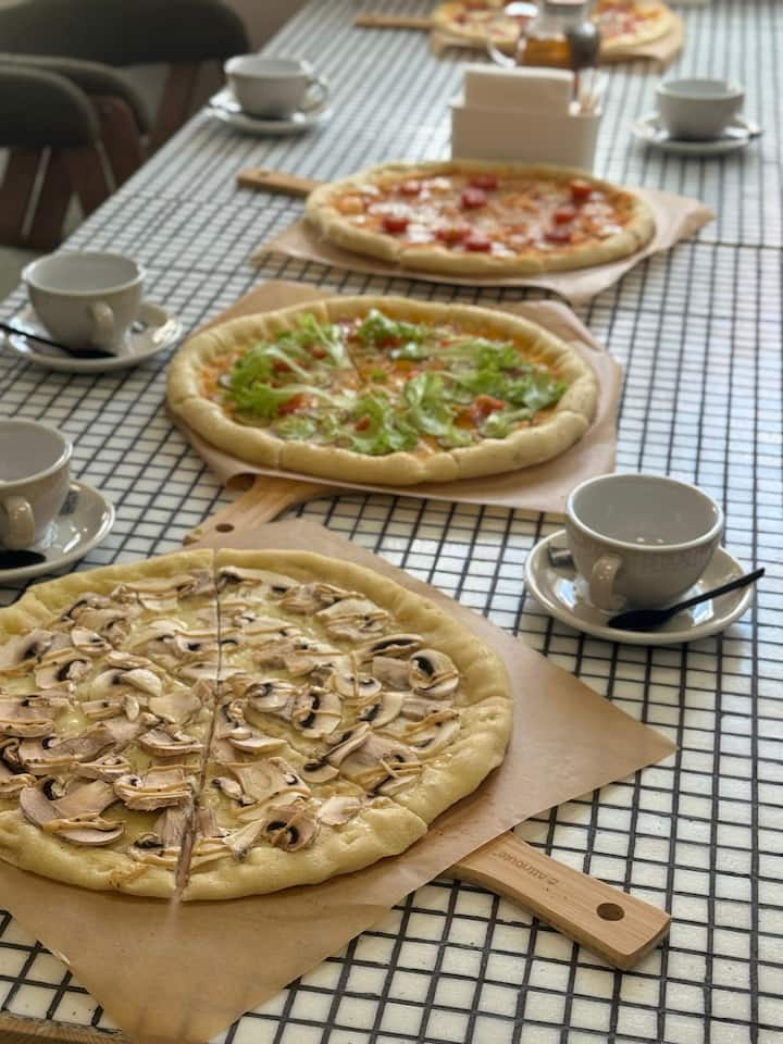 Sumérgete en un ritual italiano: amasa la masa a mano, agrega la salsa, derrite el queso en el horno. Aprende los secretos de la verdadera pizza italiana: corteza crujiente, hierbas frescas, equilibrio perfecto.