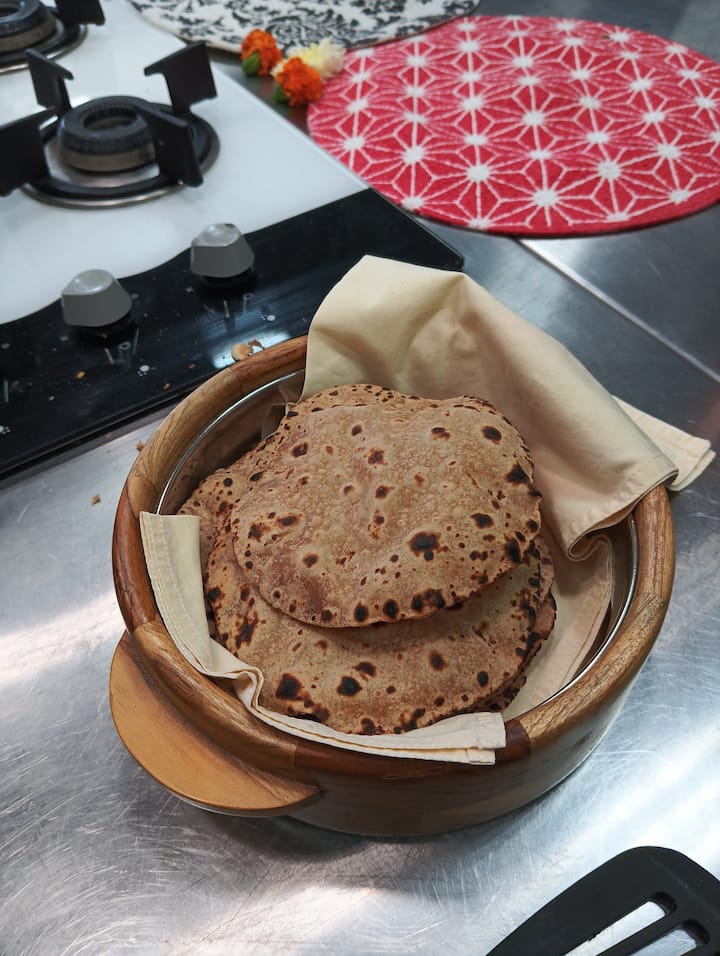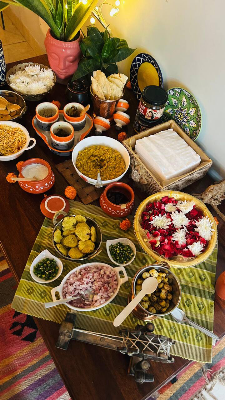 Me encanta pasar tiempo en la cocina, por lo que además de mi cocina interior, ahora también construí una cocina al aire libre para cocinar al estilo de la comunidad/pueblo. Me encanta viajar a los pueblos para aprender técnicas de cocina antiguas y tradicionales y no puedo esperar para darte la bienvenida a mi hogar, que también refleja la cultura india.