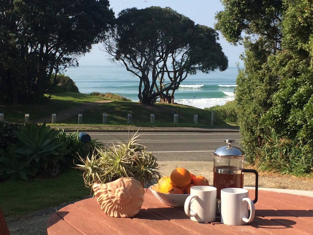 Relájate y desconecta en este alojamiento único y tranquilo... Apartamento tipo estudio frente a la playa en la hermosa playa Makorori de Gisborne. ¡El lugar perfecto para disfrutar y ver la puesta de sol, y quedarse dormido escuchando las olas! 🌊🏄♀️ Dirígete hacia la ciudad con un viaje en auto de 5 minutos a Wainui Beach y tiendas, a otros 10 minutos de Gisborne. O dirígete por la autopista 35 para explorar la costa este, con Tatapouri sobre la colina y a 10 minutos de la reserva marina de Puawa. La playa es segura y tranquila para nadar y surfear para todos los niveles.