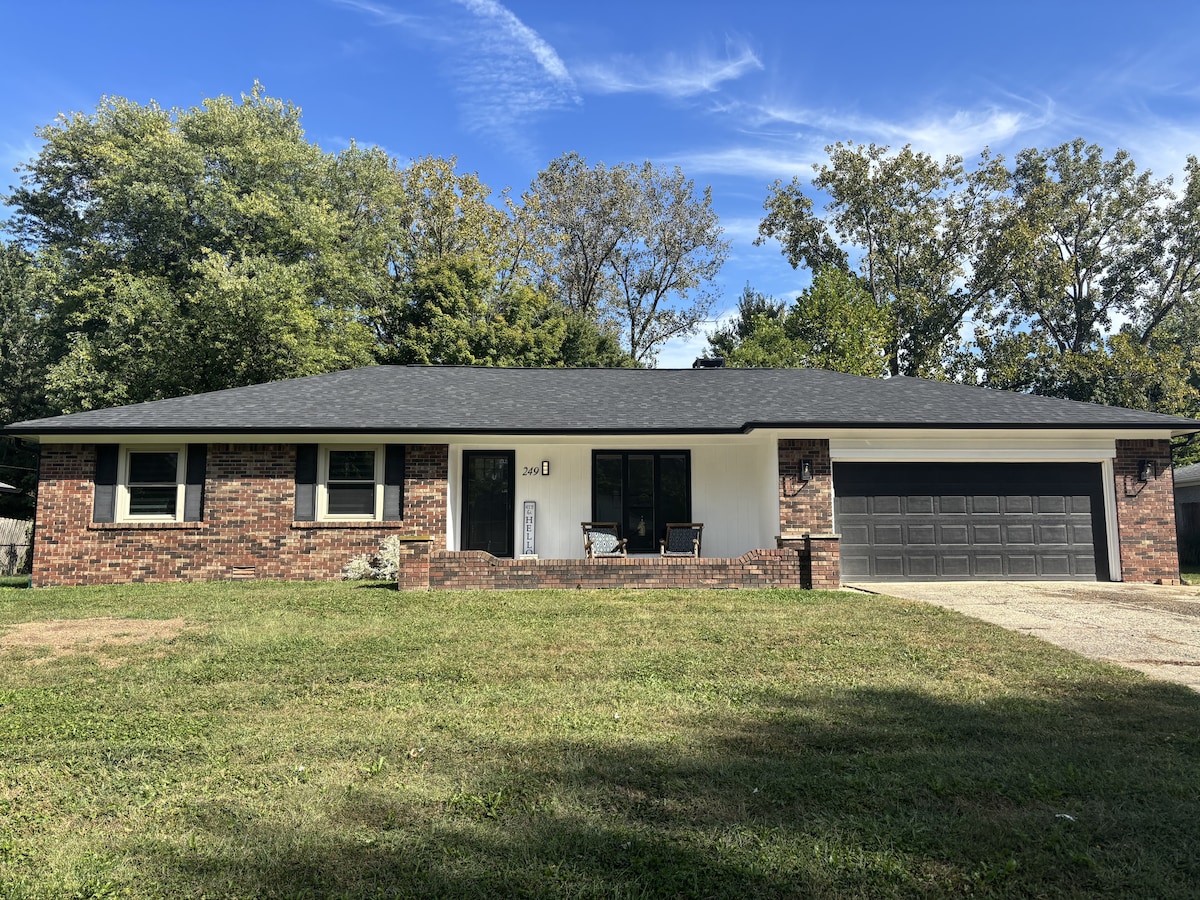 Relájate en esta casa de vacaciones de 3 dormitorios y 2 baños cerca de Indianápolis, diseñada para familias y parejas. Lo más destacado incluye un jacuzzi privado en un patio cubierto con TV, una chimenea para noches acogedoras, un calentador de propano y un gran patio trasero perfecto para juegos y relajación. Comienza las mañanas con gofres frescos con la máquina de gofres con jarabes proporcionados. A pocos minutos de la ciudad, este tranquilo refugio combina la comodidad con la tranquilidad, por lo que es ideal para una escapada romántica o una escapada familiar.