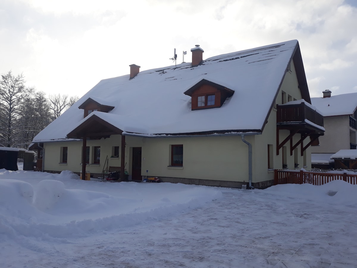 Our very comfy and well designed apartment is located in a newly finished property made up to high standards. Apartment is located on the top upper floor with no elevator, pls. Property itself is located in very quite area although in a very attractive part of this popular mountains and ski resorts of Spindleruv Mlyn. It is just a 30 metres walk away from the cablecar and ski resort of Labska as well as a few steps away from the Labska Lake.
