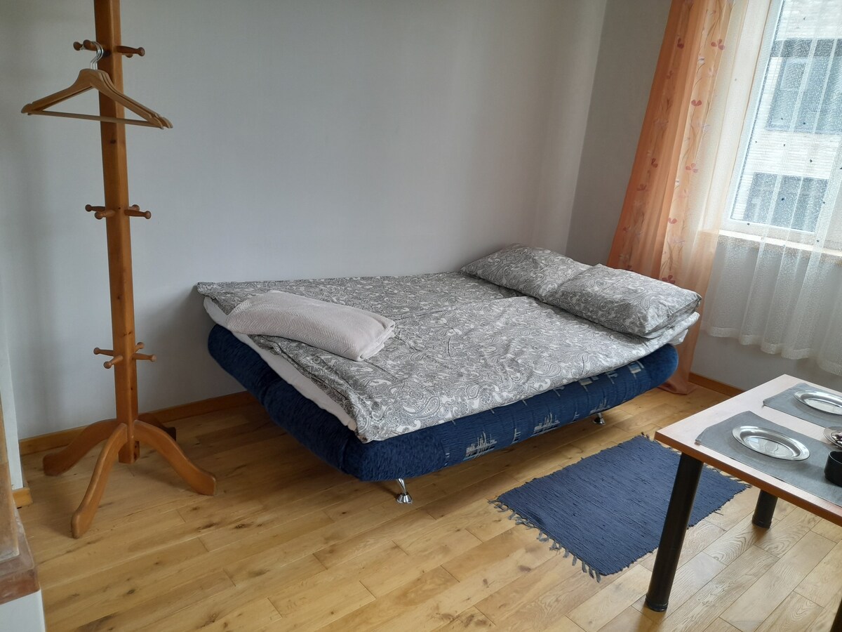 El departamento se encuentra junto a un parque en el quinto piso de un edificio de 5 pisos sin ascensor. El apartamento es de 22 m2. No está demasiado lejos del centro de la ciudad de Riga, hay muchas opciones de transporte público disponibles en las proximidades. Hay tiendas de alimentos cerca. El trayecto a la parte antigua de Riga dura 15 minutos en transporte público o 30 minutos a pie. Cama doble/tamaño queen (160 cm x 200 cm). No se puede fumar dentro del apartamento. Puede haber aparcamiento gratuito disponible. Confirma antes de reservar para asegurarte de que haya disponibilidad.