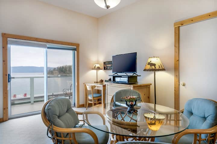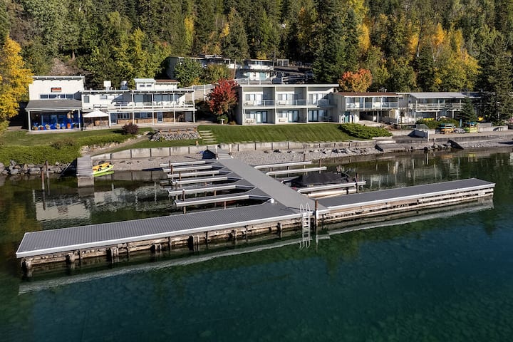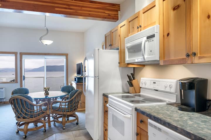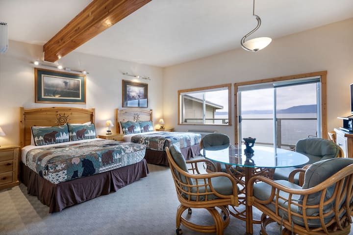 Este apartamento estudio rústico frente al mar en Many Springs Resort es un refugio acogedor ubicado a las afueras de la pintoresca ciudad de Bigfork, Montana, que ofrece vistas impresionantes de Yellow Bay en Flathead Lake. Este encantador espacio está diseñado para proporcionar comodidad y conveniencia en un entorno compacto pero acogedor. Sal a tu balcón privado frente al mar para experimentar la verdadera belleza de este lugar. Abraza el sonido tranquilo de las olas y el aroma de los pinos en el aire.