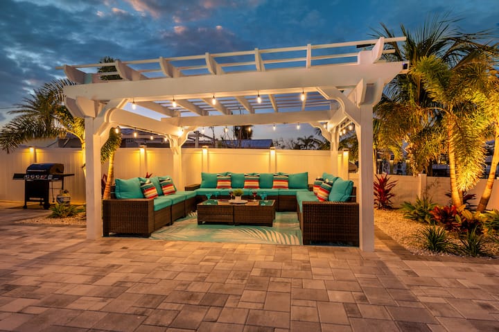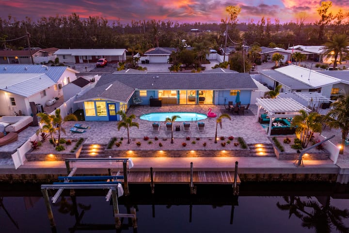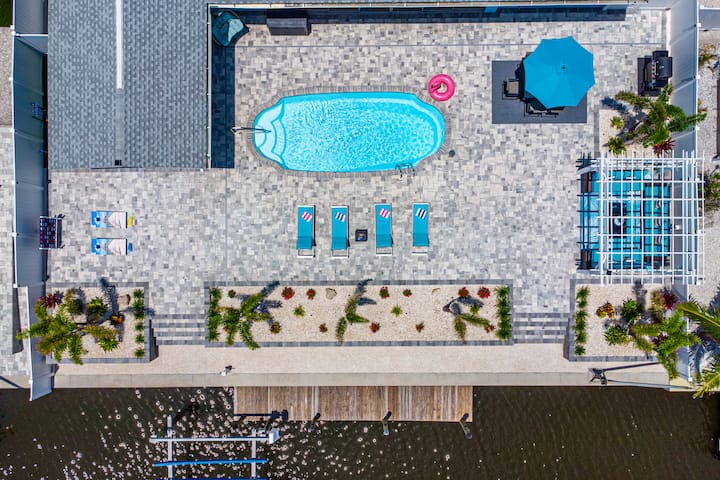 Lujosa casa en el canal, piscina, muelle, juegos, a minutos de la playa