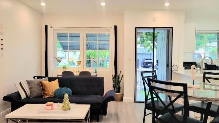 Con techos altos e iluminación natural, la acogedora casa invita a momentos de contacto con la naturaleza, la relajación y la tranquilidad entre familias, parejas y amigos: hay 1 dormitorio, amplia sala de estar y cocina abierta.