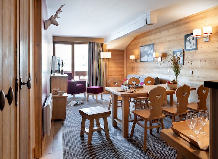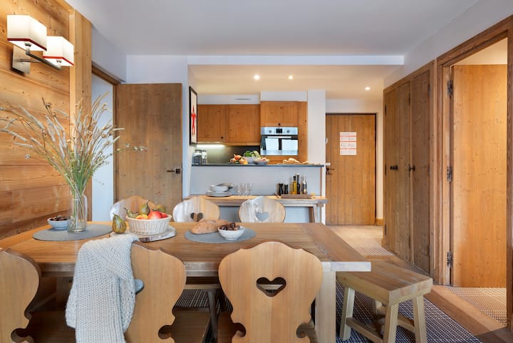 Descubrirás amplios apartamentos vestidos de madera y colores suaves. Fiel al espíritu saboyano, cada interior está cuidadosamente decorado para proporcionar un ambiente relajante y tranquilizador. Aquí te sientes como en casa. Podrás elegir entre varios tipos de apartamentos, incluidos los dúplex. También hemos planeado todo para entretener a tus hijos con un área de juegos en la recepción.
