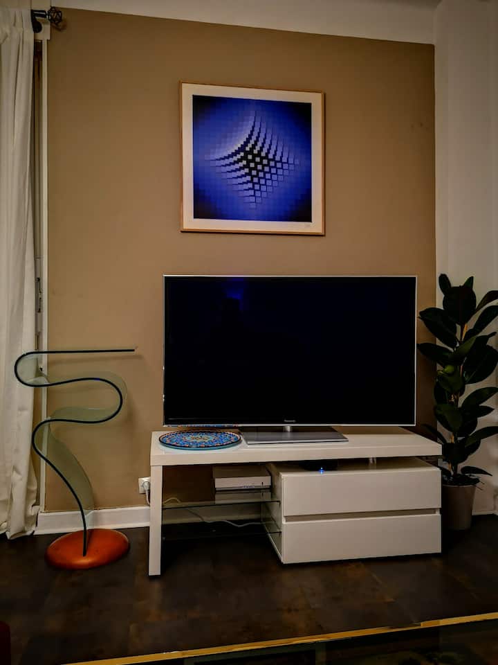 Televisor de alta definición con pantalla de 50 pulgadas y Chromecast, servicio de cable prémium