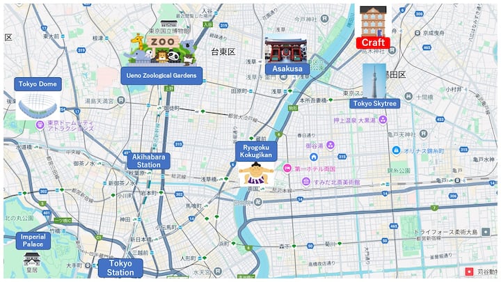 Craft302, cerca de Asakusa/Skytree, hasta 5 personas, ideal para hacer turismo en Tokio, wifi gratis