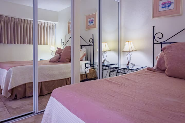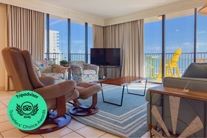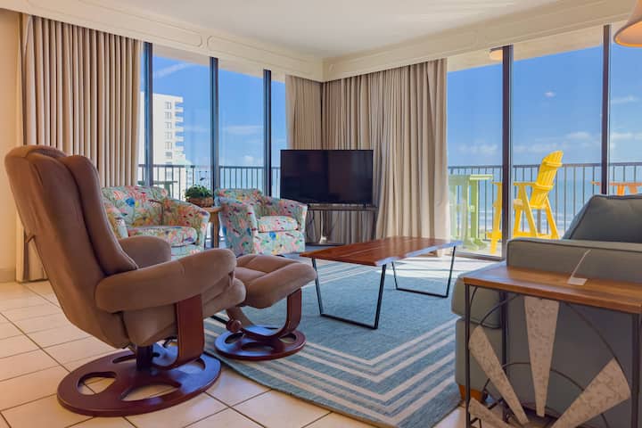 El condominio #1001 del Isla Grand Beach Resort ofrece vistas a nuestras piscinas, junto con vistas a la playa. La habitación del condominio tiene capacidad para 6 personas con 1 cama tamaño king en cada dormitorio y un sofá cama en la sala de estar.