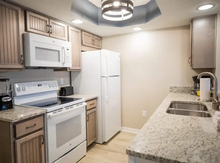 A poca distancia de atracciones, como parques de atracciones, cena en la franja de playa, frente a la playa. Una escapada cómoda y repleta de comodidades cerca de varios campos de golf en los alrededores. Nuestro lugar favorito para comer es Cape Grill & Bar, en el lugar a menos de 5 minutos a pie.