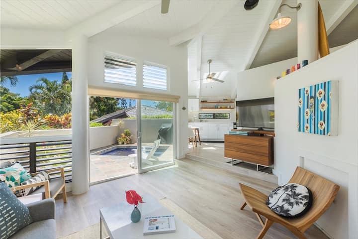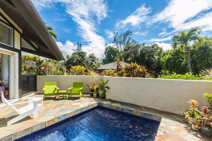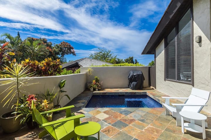 Relájate bajo el sol en la intimidad de tu propio patio en Pali Uli Cottage o date un chapuzón en la refrescante piscina de inmersión. Una parrilla para barbacoa también crea la opción de preparar comidas al aire libre en casa.