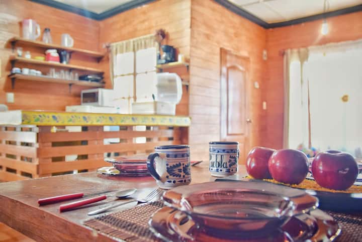 Cabaña y Jardín, equipada, céntrica. Vista al lago