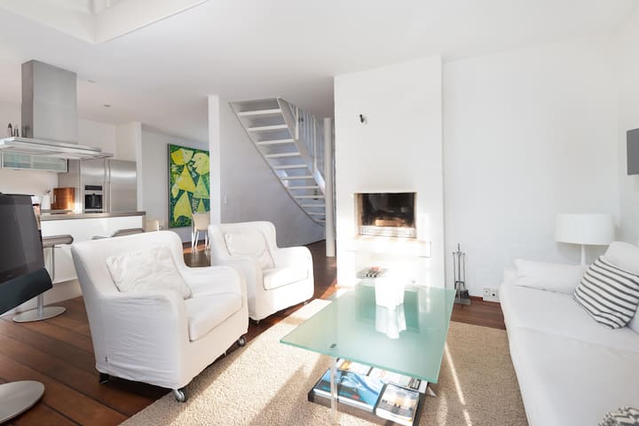 Encontrarás un nicho de cocina muy agradable con todas las instalaciones modernas, incluido un gran refrigerador americano. En la isla de cocina también hay dos taburetes de bar donde puedes disfrutar de una copa de vino mientras el chef trabaja. La gran cocina-comedor es el corazón de la casa con un amplio espacio alrededor de la mesa de comedor para entretener tanto cenas acogedoras como juegos de mesa. Además, un bonito y acogedor rincón con sofá y sillones de telas blancas y estéreo / TV B&O. Desde la cocina-comedor tienes acceso directo a la terraza orientada al sur. El baño también está ubicado en la planta baja y tiene ducha, bidé, inodoro y lavabo.