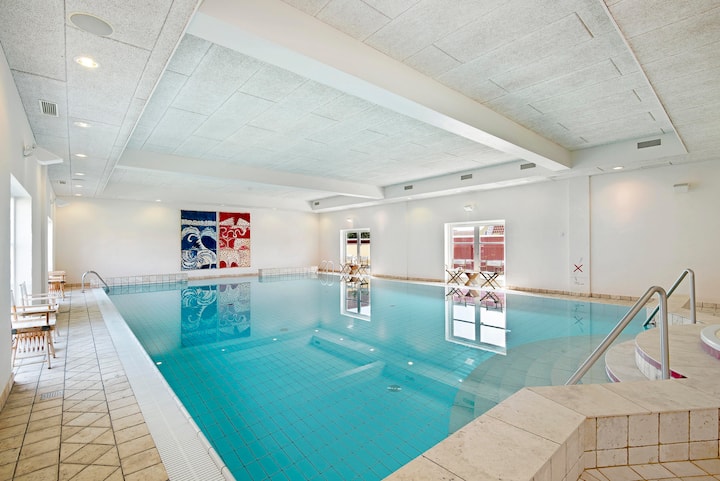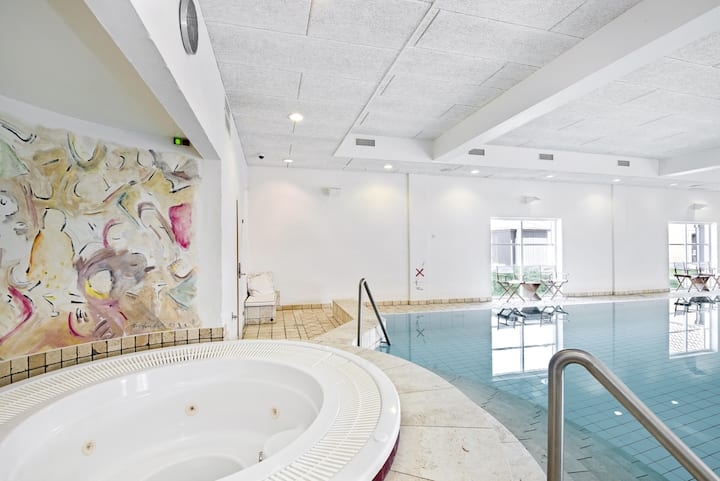 Acceso a la piscina, spa y sauna en el edificio de bienestar.