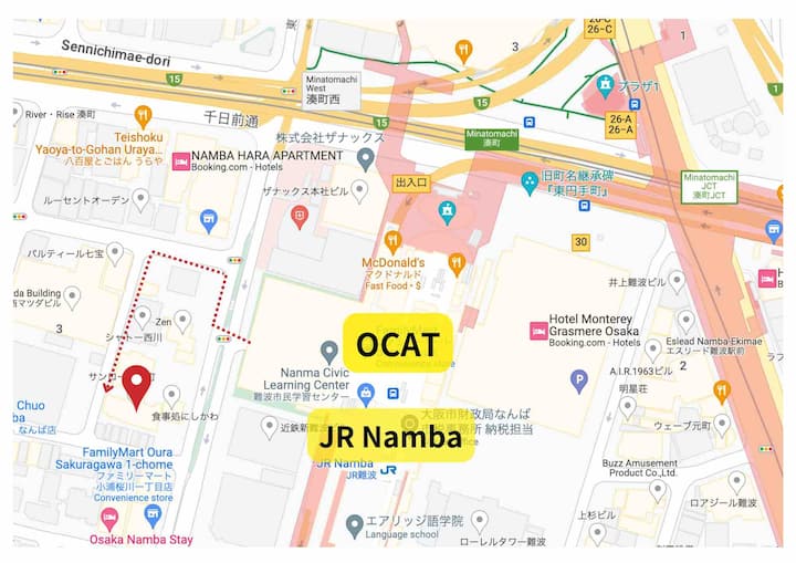 Hola, huéspedes, gracias por considerar hospedarte en nuestra habitación durante tu visita a Osaka.