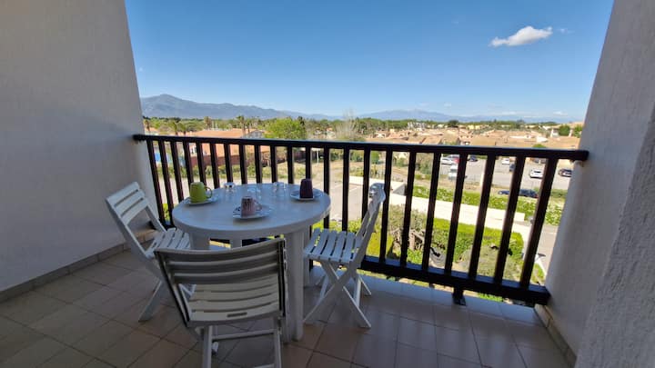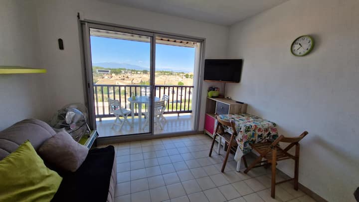 Estudio con vistas a la montaña, acceso directo a la playa y piscina