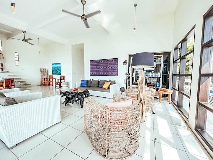 La villa principal de dos pisos tiene 5 dormitorios, 3 en la primera planta y 2 en el segundo piso, que acomodará cómodamente a 10 personas.