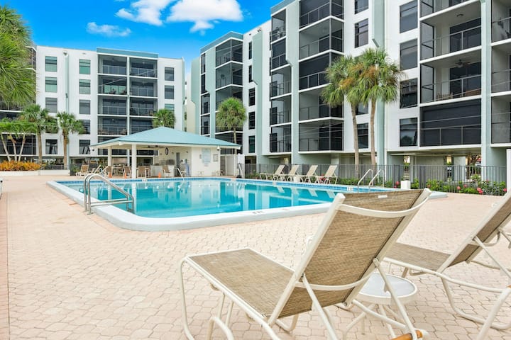1BR condominio frente al mar con piscina, jacuzzi y balcón