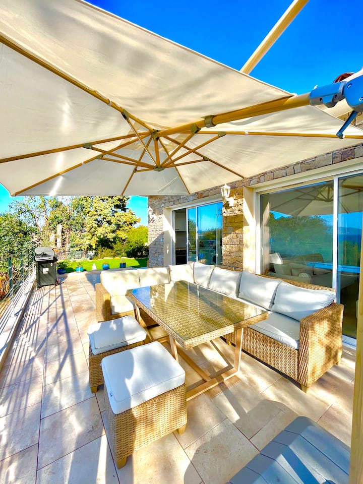 Casa con vistas panorámicas al mar, jardín, playa a 400 m