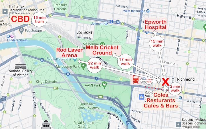 • A pocos minutos a pie del MCG, el Hospital de Tenis y Epworth