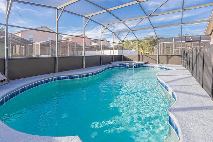 Esta CASA CON PISCINA TOTALMENTE AMUEBLADA cuenta con una variedad de características extraordinarias que seguramente cautivarán incluso a los huéspedes más exigentes. ¡Los TECHOS ABVULTADOS confieren una sensación de grandeza y amplitud en todo el espacio bien iluminado! Esta casa ofrece una SUITE PRINCIPAL de tamaño considerable y cuatro dormitorios adicionales, lo que proporciona una comodidad y versatilidad incomparables. Ya sea que tengas familiares extendidos, invitados frecuentes o simplemente desees un santuario vacacional, esta casa con piscina seguramente te impresionará. Te encantará la acogedora PISCINA PRIVADA Y SPA con un lanai cubierto, todo PROTEGIDO para tu comodidad. Este alojamiento ofrece la fusión perfecta de espacio, comodidad y conveniencia.