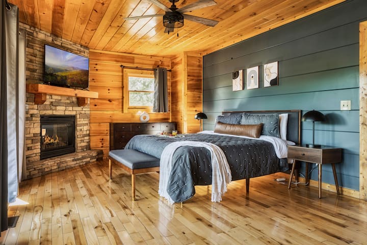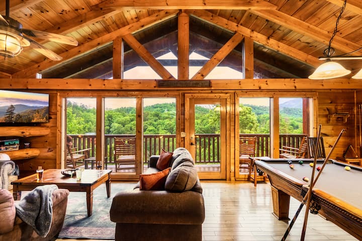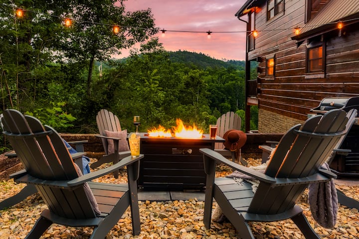 Vistas a la montaña, chimenea, sala de cine, sala de juegos