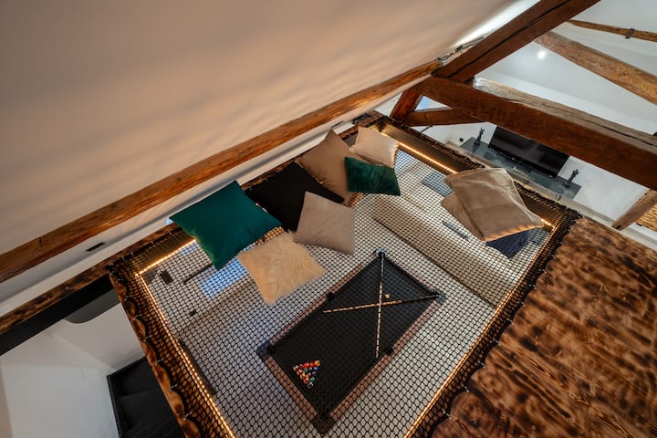 Hermoso loft con spa, billar y red colgante