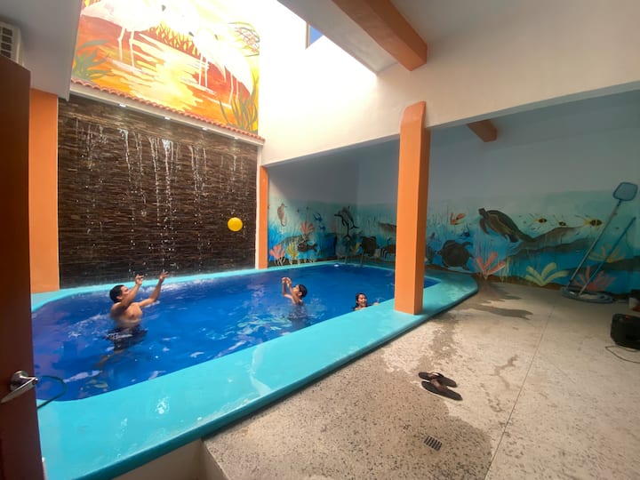 Este es uno de los pocos lugares en la zona con piscina.