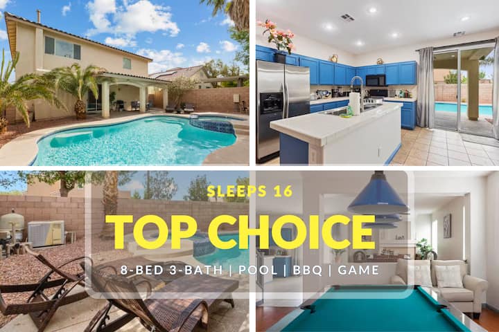 Las Vegas 4BR-8Camas 3Baños Piscina Barbacoa Juego
